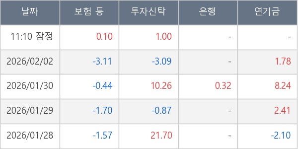 ※ 사모펀드 등 일부 기관의 순매매량은 표시되지 않음
