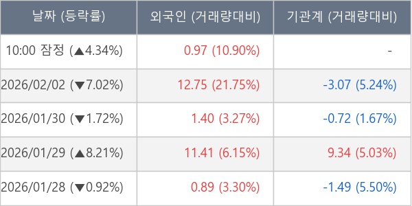 [표] 외국인ㆍ기관 순매매량 (단위 만주)