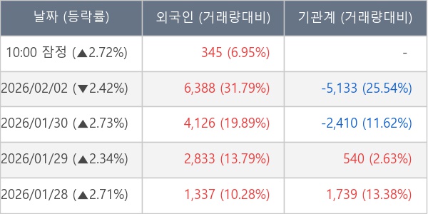 [표] 외국인ㆍ기관 순매매량 (단위 주)