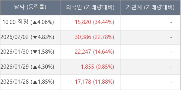 [표] 외국인ㆍ기관 순매매량 (단위 주)