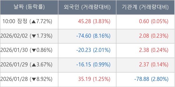 [표] 주요 기관별 순매매량 (단위 만주)