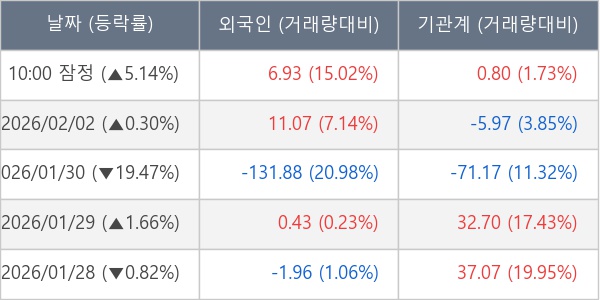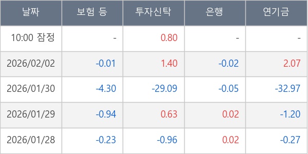 [표] 주요 기관별 순매매량 (단위 만주)