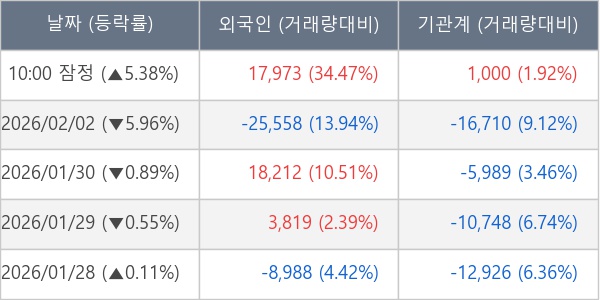 [표] 외국인ㆍ기관 순매매량 (단위 주)