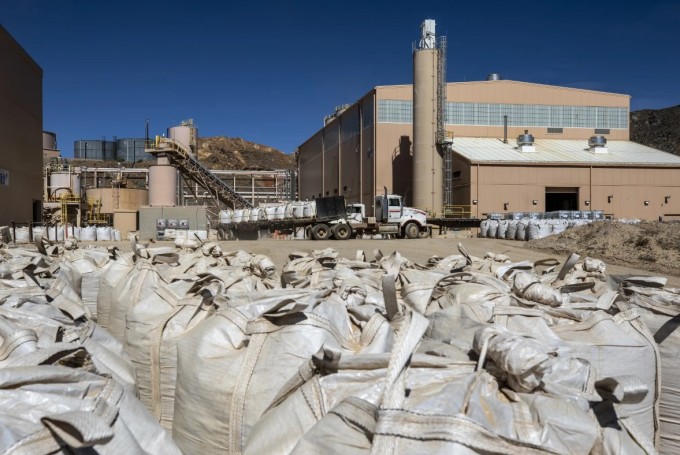 미국 캘리포니아 마운틴패스에 있는 MP머터리얼스 광산에 놓인 희토류 포대 [사진=블룸버그통신]