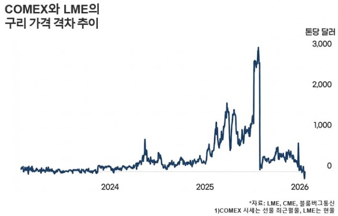 3가지 전제가 동시에 무너지면서 세계 원자재 시장 곳곳에서는 역설이 벌어졌다. 역설이 두드러지게 나타난 곳이 구리 시장이다. 미국 기업들은 관세 확대에 대비해 세계 구리를 빨아들이기 시작했고 COMEX(뉴욕상품거래소) 등록 재고는 1년 새 10만톤 미만에서 50만톤대로 늘어나 역대 최다 규모를 경신했다.