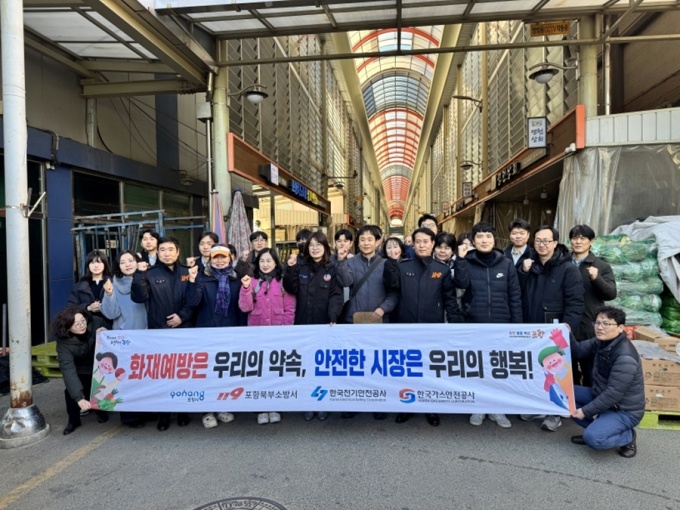 포항시가 3일, 소방, 전기.가스안전공사, 지역 사회단체와 함께 오천시장에서 화재와 한파 대비 안전점검을 실시하고 시민들에게 행동 요령을 홍보하고 있다.[사진=포항시] 2026.02.03 nulcheon@newspim.com