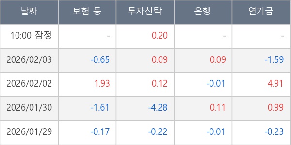 [표] 주요 기관별 순매매량 (단위 만주)