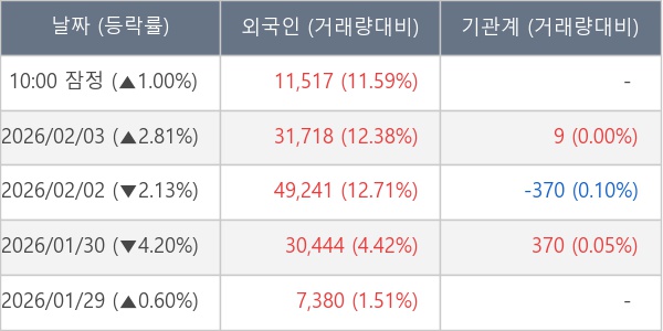 [표] 외국인ㆍ기관 순매매량 (단위 주)