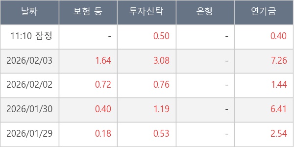 ※ 사모펀드 등 일부 기관의 순매매량은 표시되지 않음