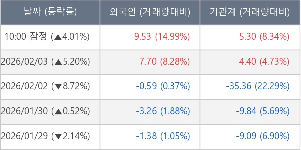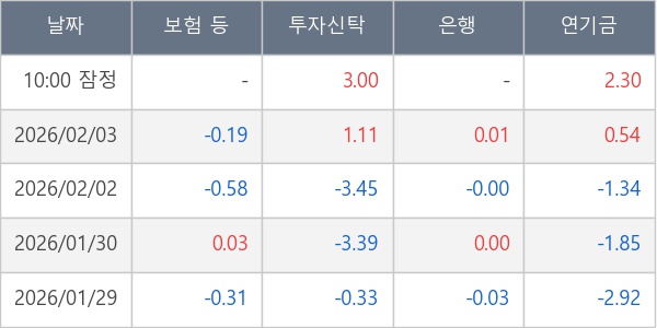 [표] 주요 기관별 순매매량 (단위 만주)