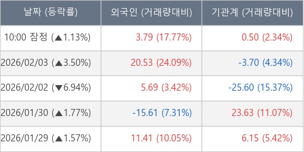 [서울=뉴스핌] 로보뉴스 = 04일 10시 15분 현재 현대로템(064350)은 외국인과 기관이 각각 3.79 만 주, 0.50 만 주 순매수(잠정) 하면서 전일 대비 1.13% (현재가 224,500원) 상승하고 있다.