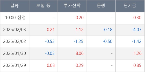[표] 주요 기관별 순매매량 (단위 만주)