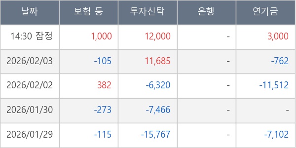 ※ 사모펀드 등 일부 기관의 순매매량은 표시되지 않음