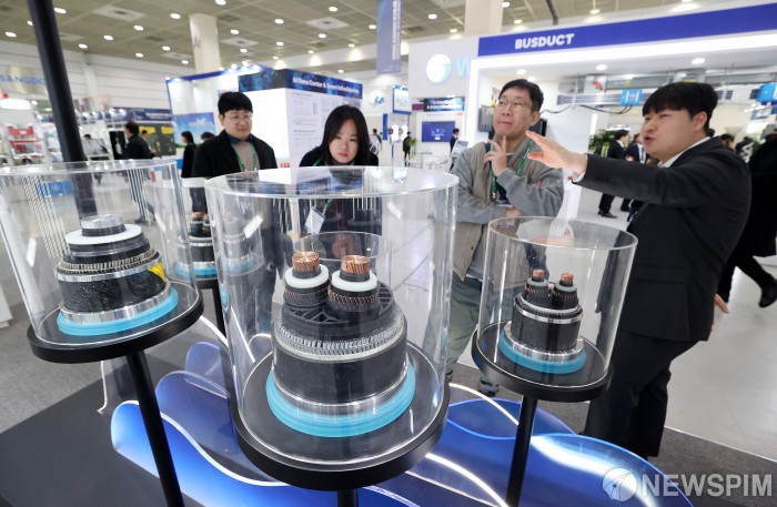 [서울=뉴스핌] 정일구 기자 = 4일 오전 서울 강남구 코엑스에서 열린 '코리아 스마트그리드 엑스포 2026·일렉스 코리아 2026'를 찾은 관람객들이 대한전선 부스를 둘러보고 있다. 2026.02.04 mironj19@newspim.com