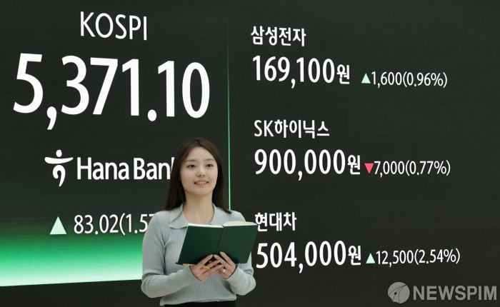 [서울=뉴스핌] 양윤모 기자 = 4일 오후 코스피가 전장 종가보다 83.02 포인트(1.57%) 상승하며 5371.10으로, 코스닥은 5.10 포인트(0.45%) 상승한 1149.43 으로 거래를 마감한 가운데, 서울 중구 하나은행본점 딜링룸에서 직원들이 업무를 보고 있다. 서울외환시장에서 달러/원 환율은 전장 대비 5.60원 상승한 1451.00원에 주간거래를 마감했다. 2026.02.04 yym58@newspim.com