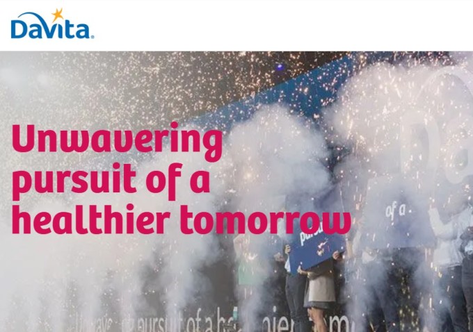 1994년 설립되어 미국 콜로라도주 덴버에 본사를 두고 있는 다비타(종목코드: DVA)는 종합적인 신장 질환 관리 서비스를 제공하며, 25년간 임상 품질 및 혁신의 선두주자로 자리매김해 왔다. 다비타는 신장 질환의 진행을 늦추는 것부터 이식 지원, 급성기 병원 치료부터 가정 투석에 이르기까지, 신장 건강 여정의 모든 단계와 환경에서 환자들을 돌본다.
