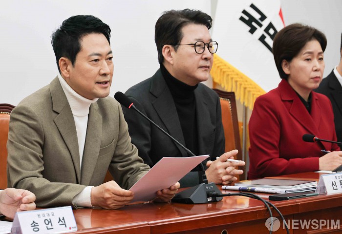 [서울=뉴스핌] 윤창빈 기자 = 장동혁 국민의힘 대표가 5일 서울 여의도 국회에서 열린 최고위원회의에서 모두발언을 하고 있다. 2026.02.05 pangbin@newspim.com