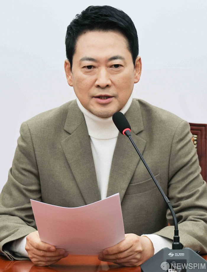 [서울=뉴스핌] 윤창빈 기자 = 장동혁 국민의힘 대표가 5일 서울 여의도 국회에서 열린 최고위원회의에서 모두발언을 하고 있다. 2026.02.05 pangbin@newspim.com