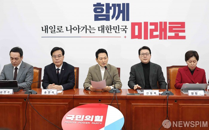 [서울=뉴스핌] 윤창빈 기자 = 장동혁 국민의힘 대표가 5일 서울 여의도 국회에서 열린 최고위원회의에서 모두발언을 하고 있다. 2026.02.05 pangbin@newspim.com