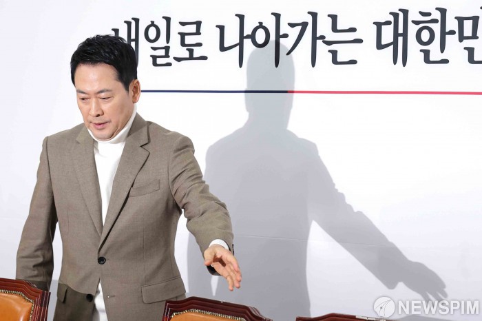 [서울=뉴스핌] 윤창빈 기자 = 장동혁 국민의힘 대표가 5일 서울 여의도 국회에서 열린 최고위원회의에 참석하고 있다. 2026.02.05 pangbin@newspim.com