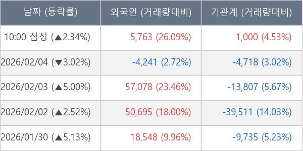 [표] 외국인ㆍ기관 순매매량 (단위 주)