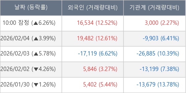 [표] 주요 기관별 순매매량 (단위 주)