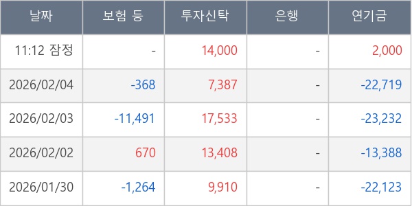 ※ 사모펀드 등 일부 기관의 순매매량은 표시되지 않음