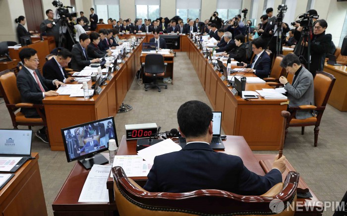 [서울=뉴스핌] 윤창빈 기자 = 신정훈 국회 행정안전위원장이 5일 서울 여의도 국회에서 열린 행정안전위원회 전체회의에서 의사봉을 두드리고 있다. 2026.02.05 pangbin@newspim.com