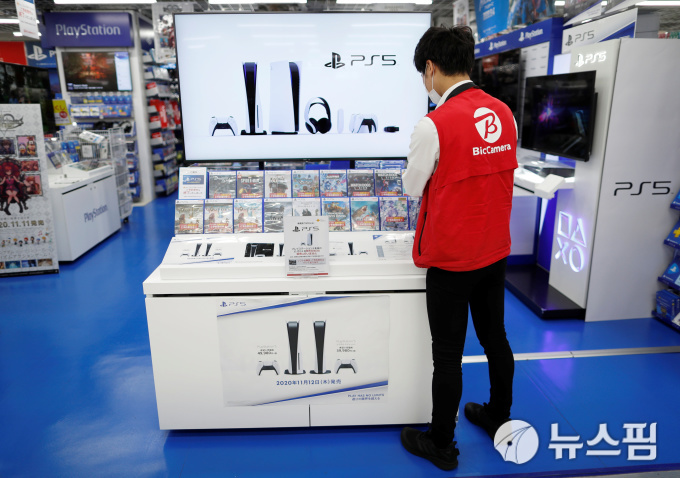[도쿄 로이터=뉴스핌] 최원진 기자= 일본의 전자제품 소매업체 '빅 카메라'(ビックカメラ·Big Camera) 매장에 소니의 최신 게임콘솔 '플레이스테이션 파이브(5)'가 진열되어 있다.