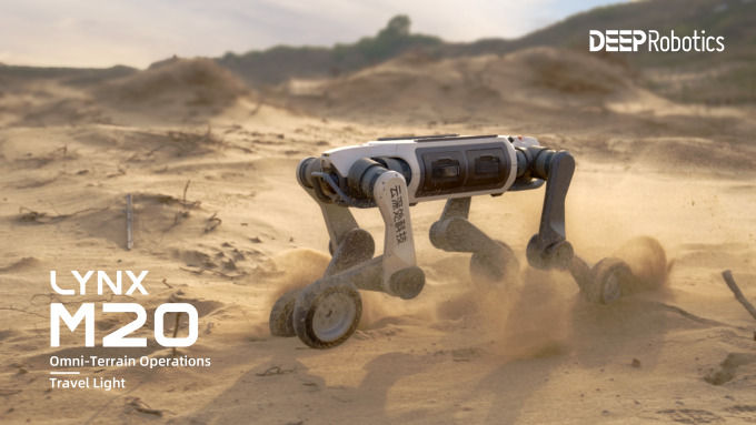 특히 Lynx M20 Pro는 바퀴를 활용한 고속 주행과 다리를 이용한 장애물 극복 기능을 동시에 갖춘 휠·레그 하이브리드 로봇이다. 각 다리에 4개의 모터가 적용된 16자유도 구조를 통해 평지에서 최대 초속 5m 속도로 주행할 수 있으며 25cm 높이의 연속 계단과 최대 80cm 단일 장애물 극복이 가능하다.