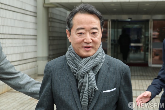 [서울=뉴스핌] 류기찬 기자 = 골관절염 세포치료제 인보사 성분을 조작한 혐의를 받는 이웅열 코오롱 명예회장이 5일 오후 서울 서초구 서울고등법원에서 열린 항소심 선고 공판에서 무죄를 선고 받은 뒤 법정을 나서며 취재진의 질문에 답하고 있다. 2026.02.05 ryuchan0925@newspim.com