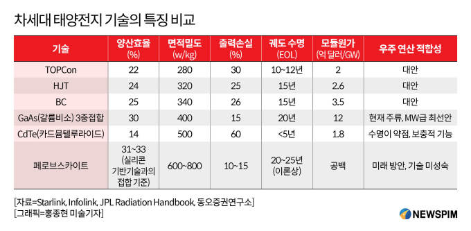 이러한 분위기 속 HJT와 페로브스카이트 등 차세대 태양전지 기술에 심도 있는 투자를 진행해온 태양광 기업들은 머스크 팀이 주목하는 '경량화와 고효율' 우주 태양광 수요와 맞닿아 있다는 점에서 주목된다.