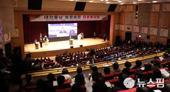 [대전=뉴스핌] 오종원 기자 = 대전시가 6일 오전 시청 3층 대강당에서 대전충남 행정통합 타운홀미팅을 개최했다. 이날 행사에는 이장우 대전시장과 지역 정치인, 기관 관계자, 시민 등 1000여 명이 참석해 통합안에 대한 의견을 나눴다. jongwon3454@newspim.com
