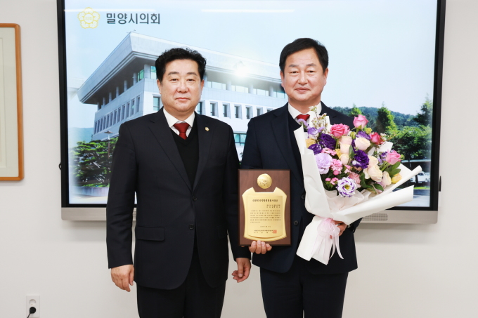 [밀양=뉴스핌] 남경문 기자 = 경남 밀양시의회는 박진수 부의장이 지방의정 발전과 시민 복리 증진에 기여한 공로로 '제18회 대한민국지방의정봉사대상'을 수상했다고 6일 밝혔다.