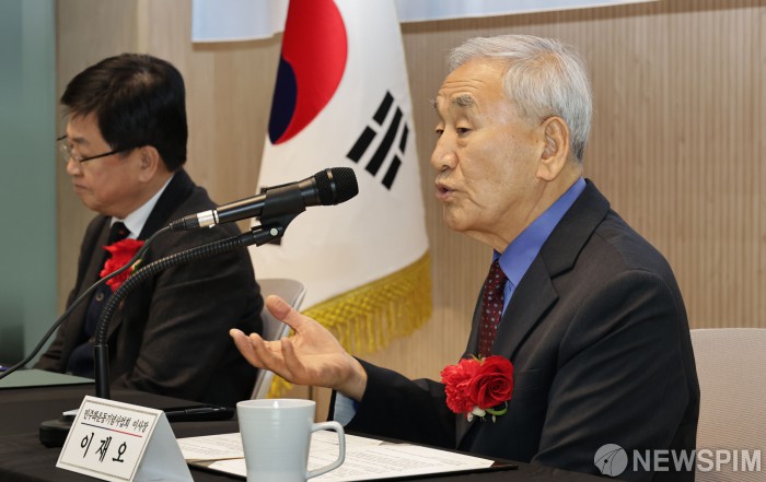 [서울=뉴스핌] 양윤모 기자 = 이재오 민주화운동기념사업회 이사장이 6일 오후 서울 용산구 민주화운동기념관에서 개최된 민주화운동기념사업회와 '민주주의 역사교육 활성화를 위한 업무협약(MOU)식'에 참석해 인사말을 하고 있다. 행사에는 최교진 교육부 장관과 이재오 민주화운동기념사업회 이사장이 참석했으며 민주화운동기념사업회는 교육부와 협력해 온라인 역사교육 자료 보관소(아카이브) 구축을 위한 사료 제공, 초·중등 교원 연수, 학생 역사교육 현장 체험학습의 활성화 등을 지원할 예정이다. 2026.02.06 yym58@newspim.com