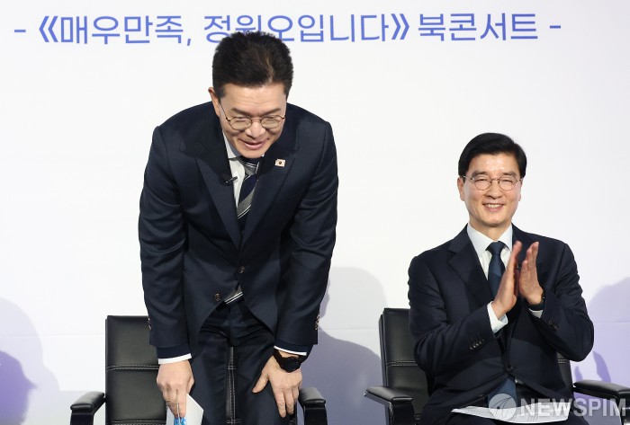 [서울=뉴스핌] 정일구 기자 = 정원오 성동구청장이 8일 오후 서울 영등포구 올댓마인드 문래에서 열린 '매우만족, 정원오입니다' 북콘서트에 참석해 인사하고 있다. 2026.02.08 mironj19@newspim.com