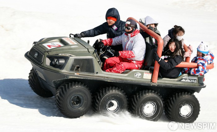 [서울=뉴스핌] 휴일인 8일 오후 강추위에도 불구하고 강원도 평창군 진부면 오대천 일원에 열린 '평창송어축'를 찾은 방문객들이 눈밭에서 아르고 체험을 즐기고 있다. 9일 폐막하는 올해 축제는 축제조직위원회에 따르면 기간 동안 모두 25만 여명이 방문, 22억 여 원의 매출을 올린 것으로 나타났다. [사진=평창관광문화재단] 2026.02.08 photo@newspim.com