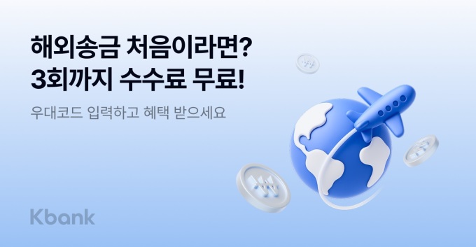 해외 송금 신청 단계에서 우대코드 'kbankfree3'를 입력하면 송금 수수료 무료 혜택을 프로모션 기간 내 3번까지 받을 수 있다. 송금 방식에 따라 최대 1만 7000원 상당의 수수료 절감 효과가 있으며 혜택을 받기 위해서는 송금 시마다 해당 코드를 입력하면 된다. 프로모션은 오는 5월 31일까지 진행된다.
