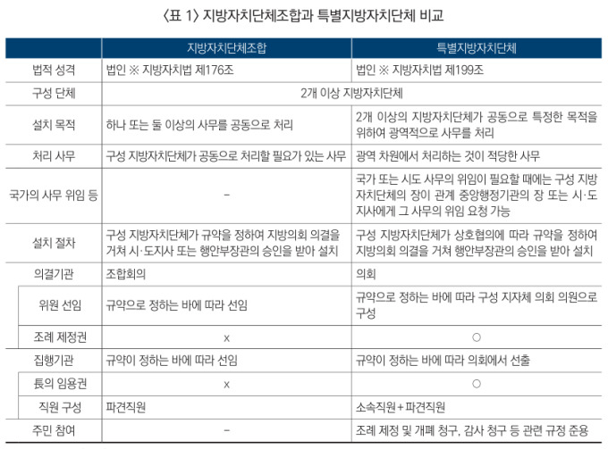 지방자치단체조합과 특별지방자치단체 비교 [자료=산업연구원] 2026.02.09 rang@newspim.com