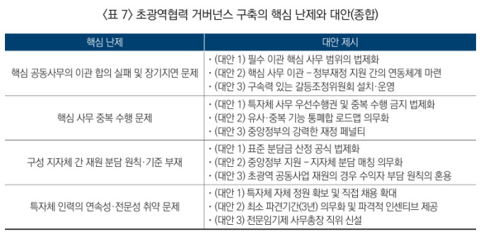 산업연은 초광역 전략이 반복적으로 좌초된 원인을 지자체 간 합의 실패에서 찾으면서도, 이를 단순한 협상 문제로 보지는 않았다. 산업연은 "핵심 사무 이관과 재원 분담을 지자체 자율 합의에만 맡기는 구조에서는 초광역 행정이 작동하기 어렵다"며 제도화 중심의 접근 전환이 필요하다고 설명했다.