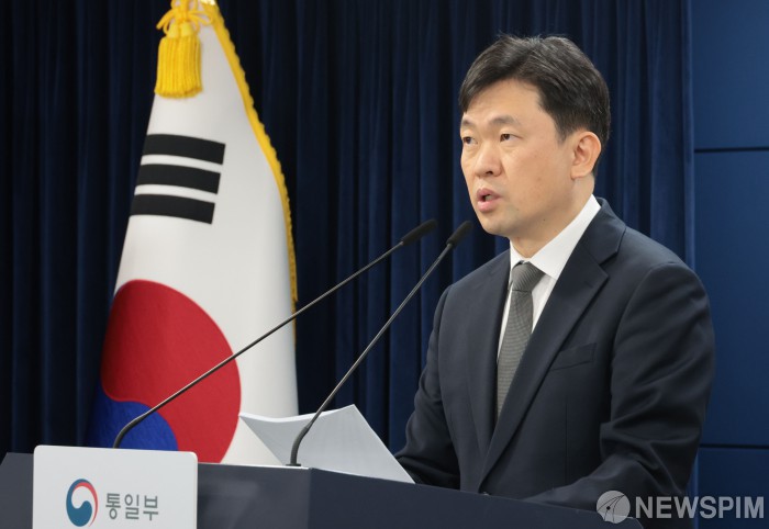 [서울=뉴스핌] 이길동 기자 = 윤민호 통일부 대변인이 9일 서울 종로구 정부서울청사에서 현안 관련 정례브리핑을 하고 있다. 2026.02.09 gdlee@newspim.com