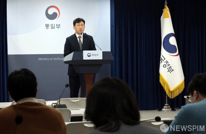 [서울=뉴스핌] 이길동 기자 = 윤민호 통일부 대변인이 9일 서울 종로구 정부서울청사에서 현안 관련 정례브리핑을 하고 있다. 2026.02.09 gdlee@newspim.com