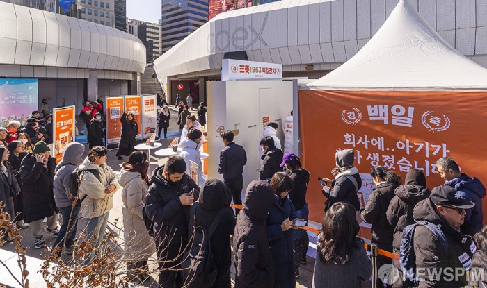 [서울=뉴스핌] 삼양식품이 지난 7일과 8일 ‘삼양1963’ 출시 100일을 맞아 서울 삼성동 코엑스 밀레니엄 광장에서 ‘삼양1963 백일잔치’ 팝업스토어를 개최했다. 주말 선보인 ‘삼양1963 백일잔치’ 팝업스토어는 이틀간 누적 방문객 1만 명을 기록하며 성황리에 마무리됐다. 팝업스토어는 ‘백일잔치’ 콘셉트에 맞춰 백일잔치 이벤트존과 백일상 포토존 등으로 꾸며졌다. 현장을 찾은 방문객들은 추운 겨울, 몸을 따뜻하게 녹여주는 삼양1963을 시식하고 백일 축전을 작성하며 팝업을 즐겼다. [사진=삼양식품] 2026.02.09 photo@newspim.com