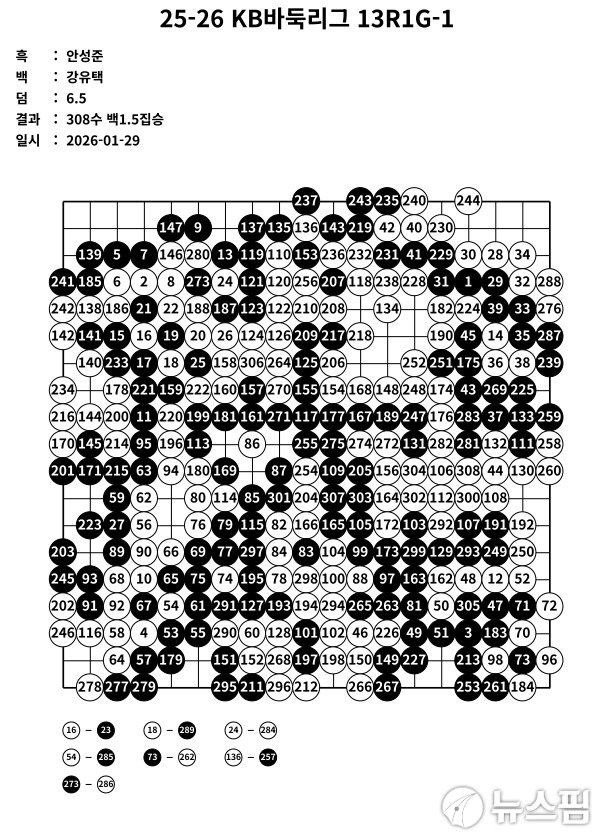 장장 5개월간 이어진 2025-2026 KB국민은행 바둑리그 정규시즌이 최종 라운드까지 치열한 순위 경쟁 끝에 막을 내렸다. 울산 고려아연이 정규리그 우승을 차지했으며, 마지막 14라운드에서는 포스트시즌 진출을 위한 중위권 팀들의 총력전이 펼쳐졌다.