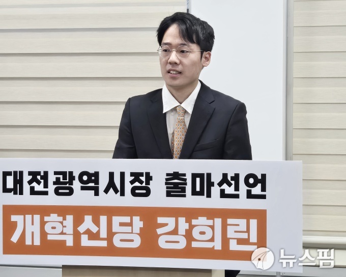 [대전=뉴스핌] 오종원 기자 = 대전시장에 출마한 개혁신당 강희린 대전시당위원장이 '대전충남 통합'이 졸속으로 추진된다며 중단해야 한다고 주장했다.