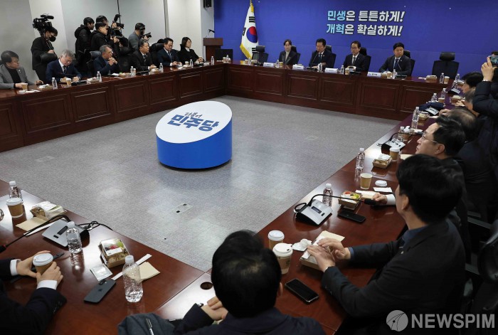 [서울=뉴스핌] 윤창빈 기자 = 정청래 더불어민주당 대표가 10일 오전 서울 여의도 국회 의원회관에서 열린 조국혁신당 합당 관련 재선의원 간담회에서 모두발언을 하고 있다. 2026.02.10 pangbin@newspim.com