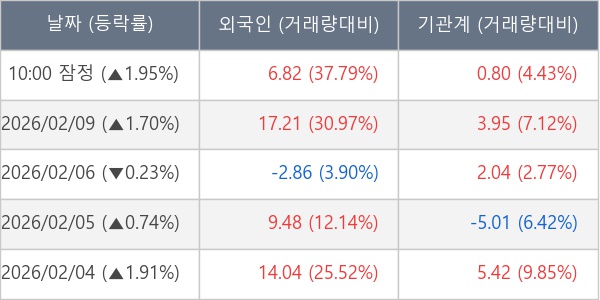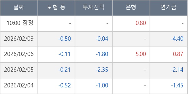 [표] 주요 기관별 순매매량 (단위 만주)