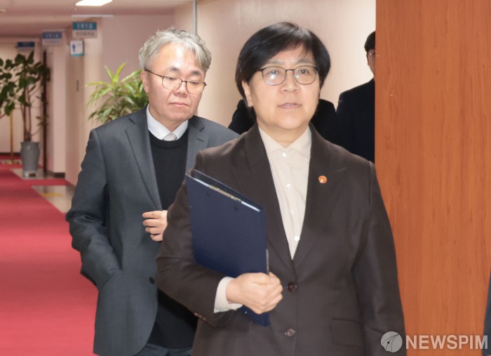 [서울=뉴스핌] 이길동 기자 = 정은경 보건복지부 장관이 10일 서울 종로구 정부서울청사에서 열린 제7차 보건의료정책심의위원회 회의에 참석하고 있다.2026.02.10 gdlee@newspim.com