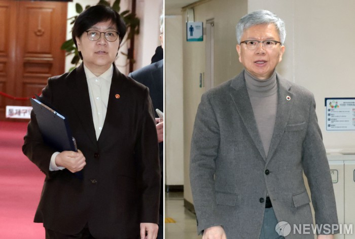 [서울=뉴스핌] 이길동 기자 = 정은경 보건복지부 장관(왼쪽)과 김택우 대한의사협회장이 10일 서울 종로구 정부서울청사에서 열린 제7차 보건의료정책심의위원회 회의에 참석하고 있다.2026.02.10 gdlee@newspim.com