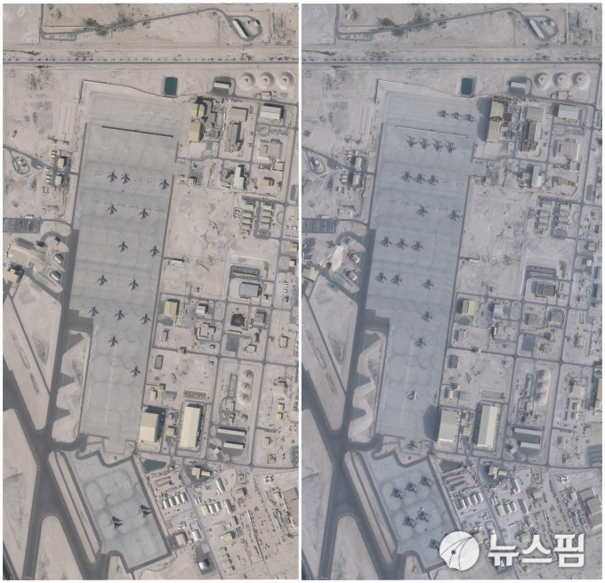 실제 위성 사진에는 알우데이드 기지의 항공 전력이 눈에 띄게 늘어난 정황도 담겼다.